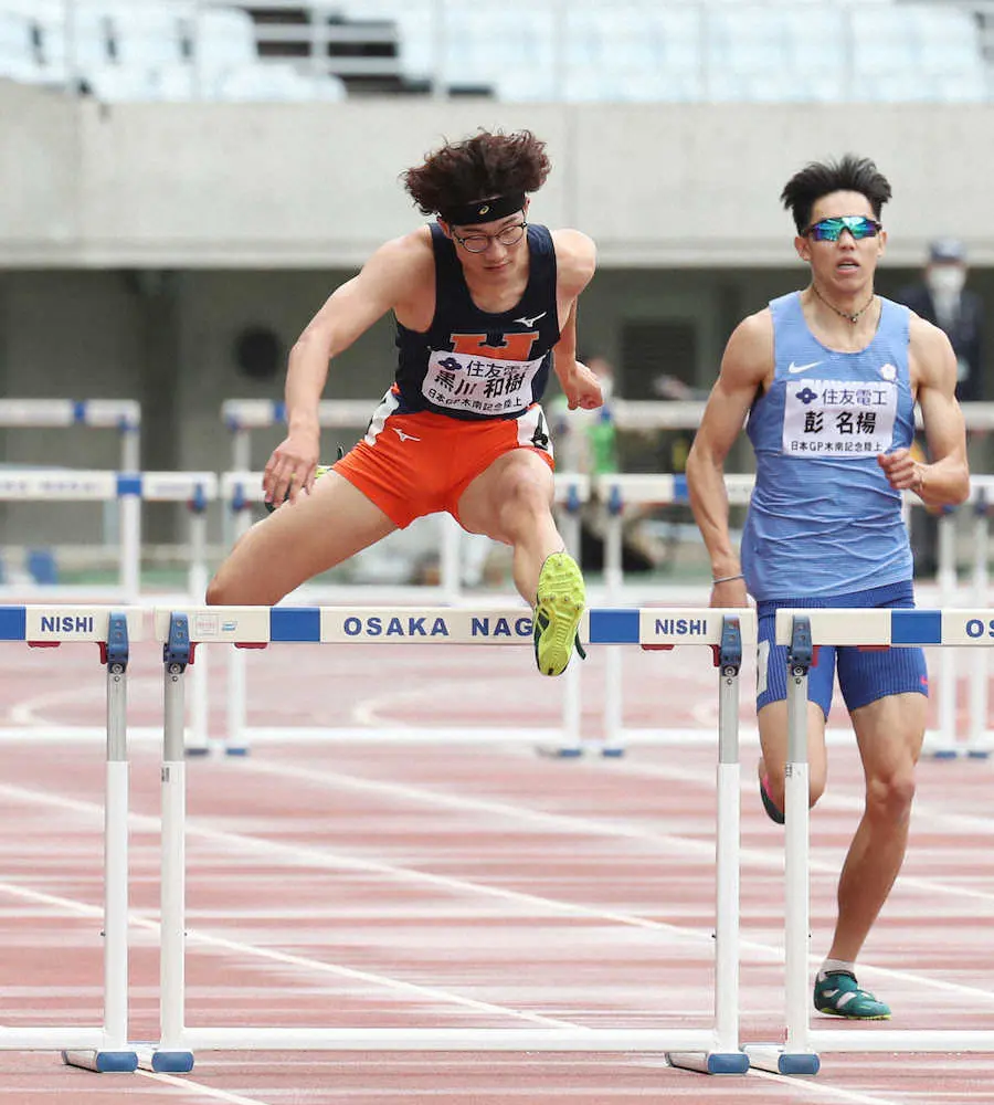 黒川が男子400メートル障害で優勝とともにミッションをクリアした。今季、取り組んでいる序盤にリラックスする走法を実践し、48秒90でフィニッシュ。世界選手権の参加標準記録をギリギリで突破し「あぶねー!」と苦笑いを浮かべた。為末大の持つ日本記録(47秒89)の更新も視野に入れており「力がかみ合っていけば、47秒台も出せると思う。しっかり練習していきたいです」と意欲を示した。