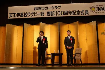 大畑氏&福岡氏がトークセッション 創部100周年の天王寺高ラグビー部が記念式典 全国制覇2度の名門