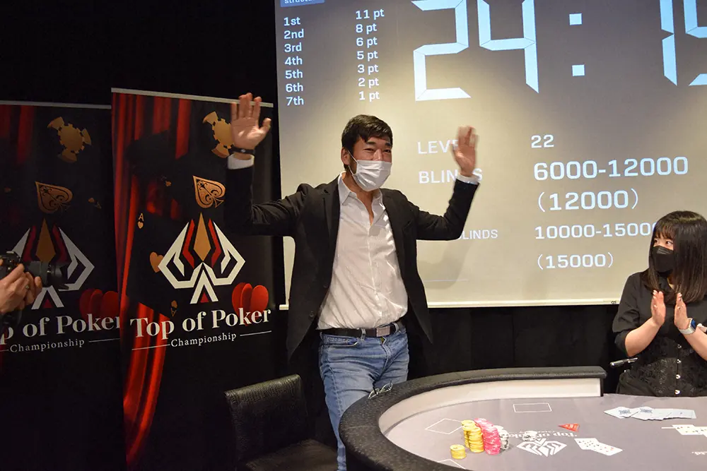 注目のメインイベントは4日に行われ、TPC過去3大会の優勝者を含む成績上位者や、招待トッププロなど30人のプレーヤーが参加して熱戦を繰り広げる中、WSOP2019Millionare Maker準優勝、WSOP2021 Championship―ONLINE優勝など、現在日本人獲得賞金No・6の池内さんが、TPC第1回大会準優勝者の佐々木圭さんをヘッズアップで破り、優勝を果たした。