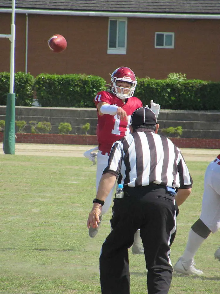 庭山が視野の広さを発揮したのとは対照的に、宇野は第2Qに敵陣25ヤードまで攻め込んだ場面のインターセプトなど、やや精彩を欠いた。「久しぶりの試合で、プレーのテンポが悪かった。(きょうは)僕が負けています」。昨年の甲子園ボウル出場を懸けた関学大との大一番以来、5カ月ぶりの実戦。将来性豊かなパッサーには、反省を次に生かす素直さがある。