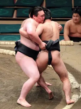 高橋は左を差して右上手を引くと慎重に前に出て寄り切り。レスリングでアジア選手権優勝の実績を持つ欧山田(22=鳴戸)を寄せ付けなかった。