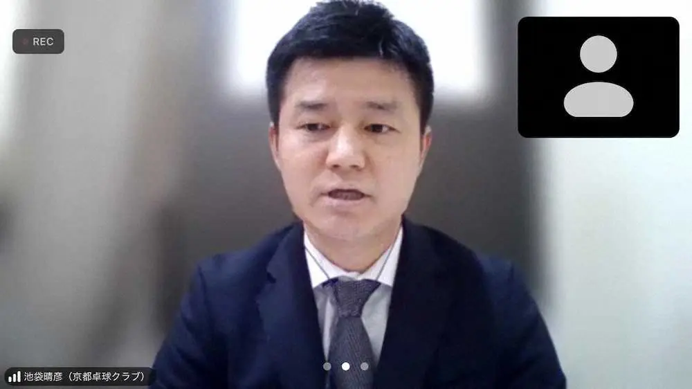 終了後のオンライン取材には、京都卓球クラブの池袋晴彦代表(39)も参加。「地元の京都でTリーグのチーム立ち上げのためにやってきた。身が引き締まる思いです」と語った。