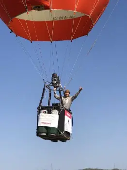 熱気球はバーナーで空気を熱し、外気と比べて比重が軽くなることで生じる浮力で浮揚する。競技では上空から小さな砂袋のマーカー(約70グラム)を指定された目標地点に落として、マーカーと目標との距離を競う。藤田は幼少の頃から父の姿を見て、熱気球パイロットに憧れた。