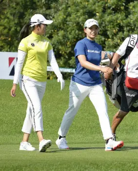 <ブリヂストンレディース初日>同組の稲見<左)と話す渋野(撮影・沢田 明徳) Photo by スポニチ 今季国内初戦の渋野 前半のインを終了してイーブンパーの16位グループ ギャラリーで見る この記事のフォト 2022年05月19日の画像一覧 もっと見る 2022年05月19日の画像をもっと見る
