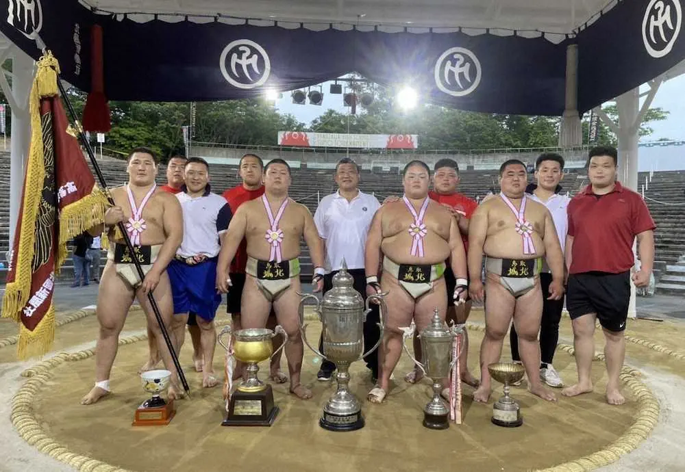 団体戦は鳥取城北が3大会連続6度目の優勝を果たした。この日は大相撲夏場所千秋楽で、同校OBの照ノ富士(30=伊勢ケ浜部屋)の幕内優勝に花を添えた。