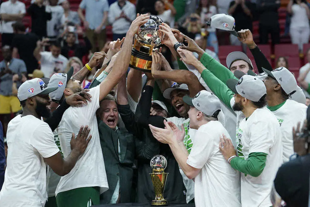 この日の26得点を加え、東地区決勝の計7戦で計175得点をマークしたジェイソン・テータム(24)がこのシリーズのMVPに贈られる「ラリー・バード・トロフィー」を手にした。ボブ・クージーもラリー・バードもセルティクスのOB。初代受賞チームと受賞者はいずれもその“後輩”となった。