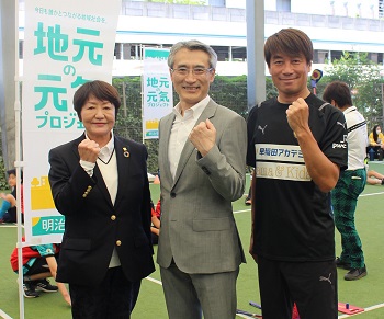 閉会式では10人にJリーグやJLPGAグッズが抽せんでプレゼントされ、全員での記念撮影でも盛り上がった。今後は神戸、横浜でもイベントを予定しており、スポーツ支援を通じた健康増進支援や地域貢献に積極的に取り組んでいく。