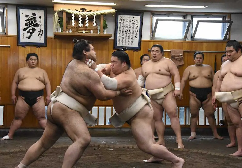 出稽古は新型コロナウイルスのまん延に伴い、20年4月に禁止され、名古屋場所(7月10日初日、ドルフィンズアリーナ)前の今月は22日まで、条件付きで一時的に認められた。高安と三番稽古を含む11番取った小結・大栄翔は有意義な交流に「巡業もなく会話も少ないので、改めて出稽古は良いものだなと思います」と実感を込めていた。