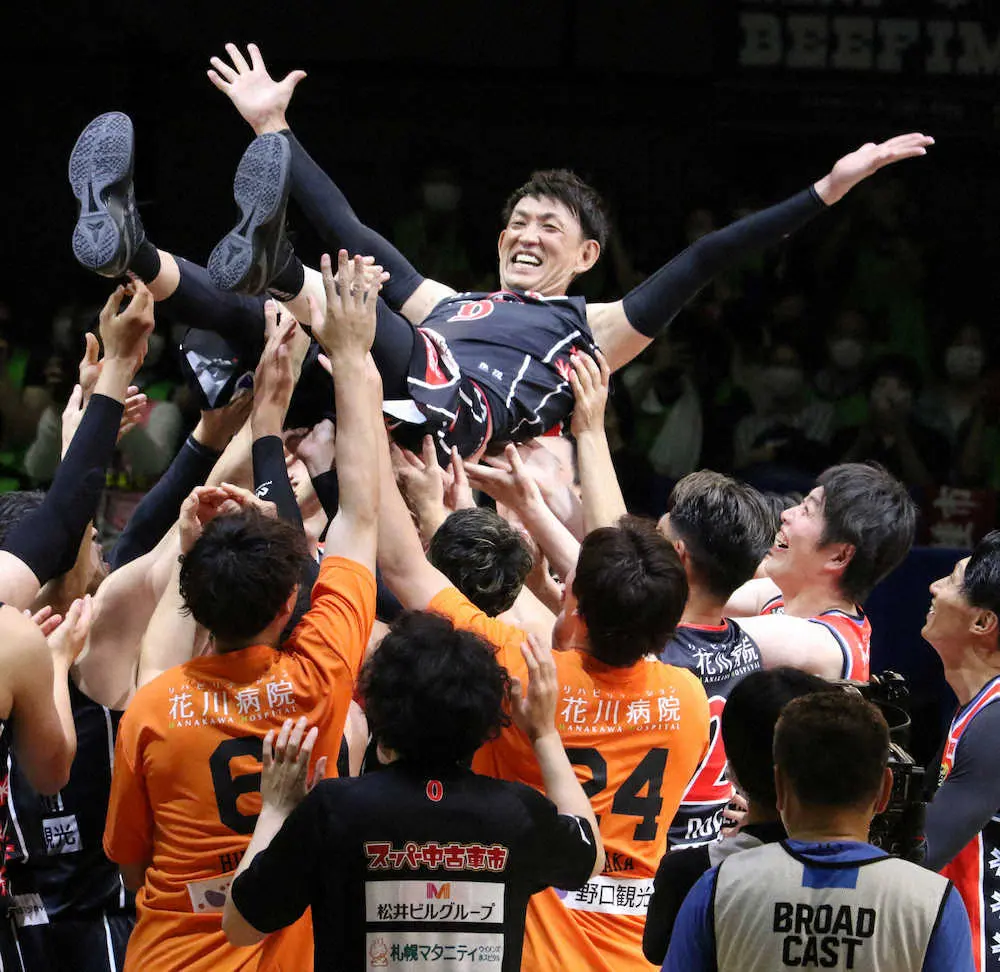 Bリーグ1部北海道で運営会社社長を兼任しながら、49歳だった19~20年シーズンまでプレーした折茂武彦さん(52)が18日、札幌市内で引退試合に臨み「シュートをし、拍手をもらえる中でのプレーは幸せだった」と約5400人の観客の前で現役生活を振り返った。