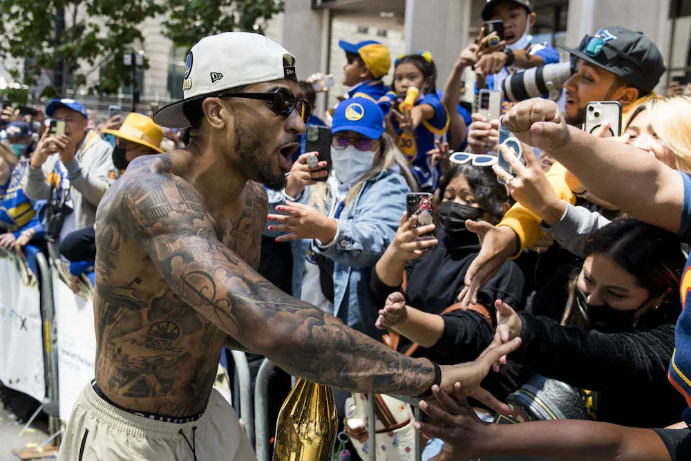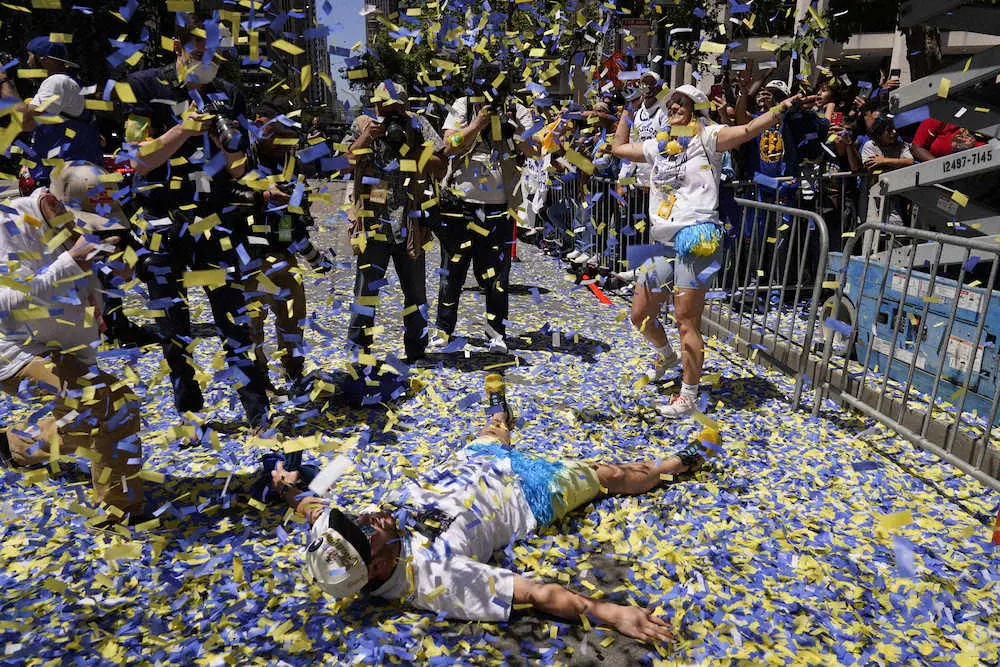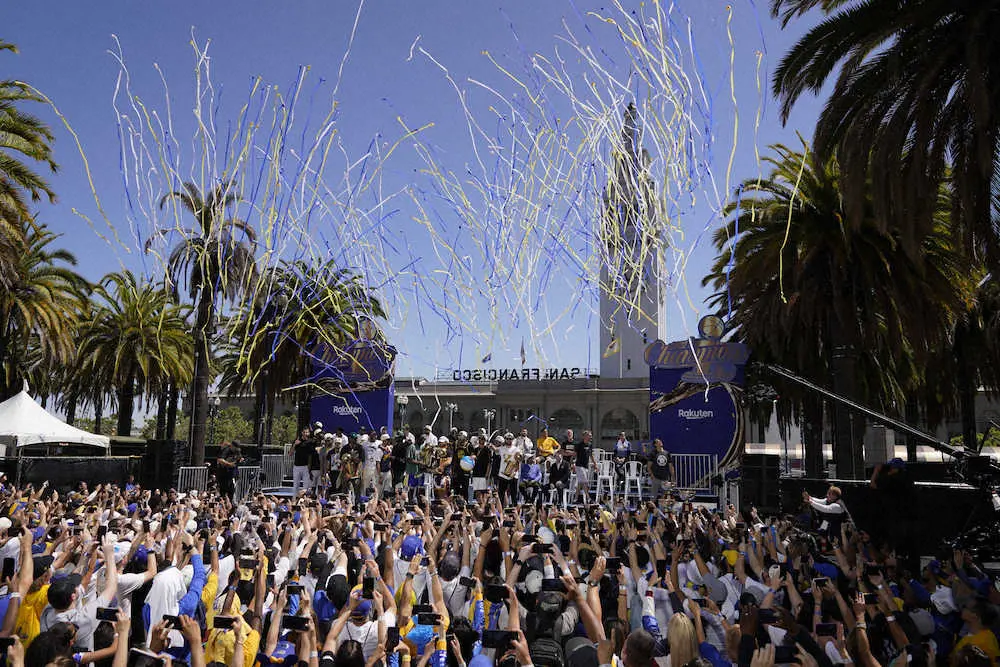 ウォリアーズの優勝パレードに繰り出した地元ファン(AP)