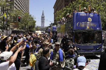 沿道を埋め尽くしたファンの数については非公表だが、CBSテレビは「数十万人が集まった」と報道。パレードは市内中心部のマーケット・ストリートを起点に2・3キロの距離で行われ、ファイナルで初めてMVPとなったステフィン・カリー(34)は過去に手にしていた3つの優勝リングをつなげたネックレスを首にかけてファンの歓声に応えていた。