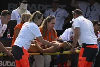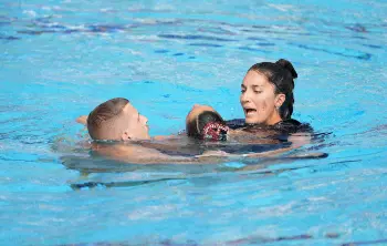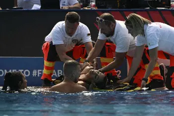異変を察知したアンドレア・フエンテス・コーチ(39)は、Tシャツに短パン姿でプールに飛び込んで水中から救出。水面に持ち上げ、他の人の助けも得てプールから出し、救護班によって運び出された。