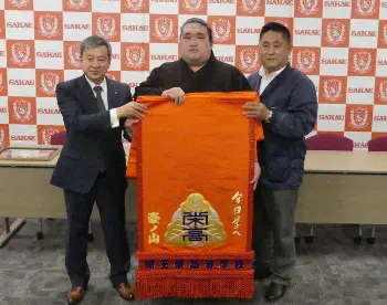 新十両・豪ノ山 埼玉栄高から化粧まわし贈呈「気が引き締まる」 山田監督「こんなに幸せなことはない」