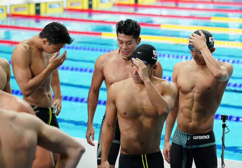男子400メートルメドレーリレー予選で日本(入江、武良、水沼、松元)は全体9位で決勝進出を逃した。8位に0秒11及ばなかった。100メートルバタフライで銀メダルを獲得した水沼は、前夜の同決勝から大きくタイムを落とし「本当に申し訳ない」と悔し涙を見せた。東京五輪で日本は6位。今大会はメダルへの手応えを持って臨んでいただけに、落胆は大きかった。
