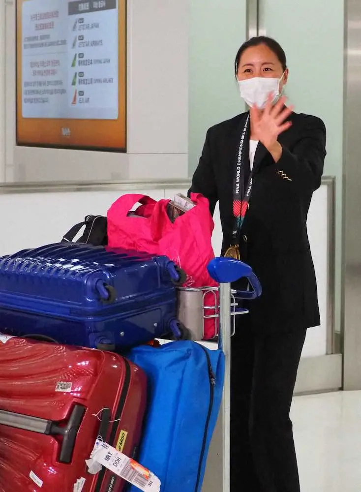 世界水泳2冠の乾友紀子が帰国 来年の福岡大会へ意欲「気持ちとしては出たい」