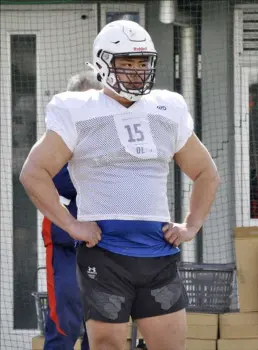 現在は本業の相撲が週6回、アメフトの練習が週2、3回。日体大相撲部では上級生が雑用を行うルールになっており、今年から道場の掃除やちゃんこ番も務める。NFL挑戦を見据えて英語の勉強もしており、休みのない生活に「めちゃくちゃ忙しいです」と苦笑い。防具をつけた練習はほどんど行わず、現役Xリーグ選手の栗原崇(34、イコールワン福岡SUNS)の指導の下、ラダートレーニングなどで俊敏性を鍛えている。体重135キロながら40ヤード走のタイムは5秒1。「スピード面が立ち合いに生きている。相撲に良い影響が出ている」と約4カ月間の成果を早くも実感した。