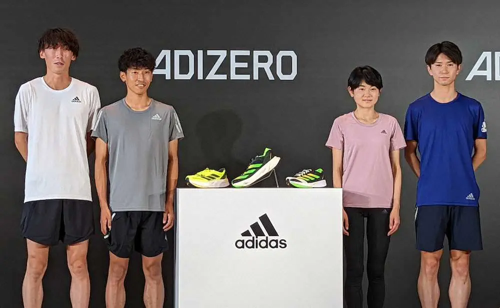 来年の24年パリ五輪マラソン代表選考会グランドチャンピオンシップ(MGC)の出場権を持つ男子の浦野雄平(24=富士通)、女子の上杉真穂(26=スターツ)が29日、都内でアディダスジャパンの新商品発表会に参加した。