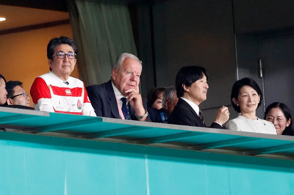 元首相とラグビー界の縁は深い。17年5月には、京都迎賓館で開催された19年W杯日本大会の組分け抽選会に出席。ワールドラグビー(WR)のビル・ボーモント会長と並び、日本が1次リーグA組に入るくじを引いた。W杯開催時期も在任時期と重なっており、日本―ロシアの開幕戦を観戦し、試合後には日本代表のロッカールームを訪問。決勝ではプレゼンターを務め、大会後の同年12月には史上初の8強入りを果たしたリーチ・マイケル主将(当時)らを首相官邸に招き会談を行った。