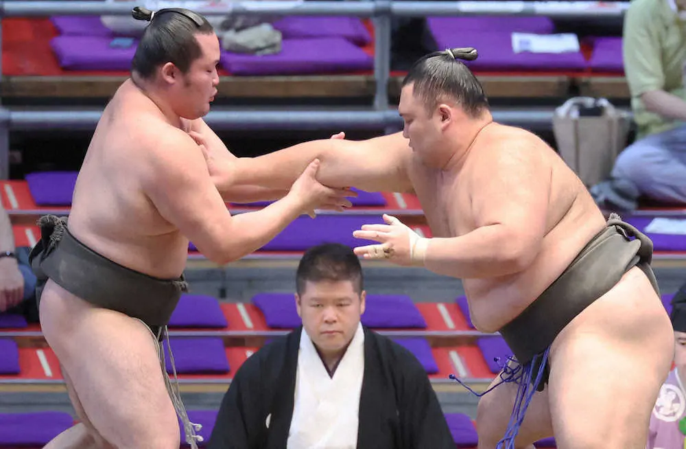 協会の新型コロナウイルス感染対策ガイドライン違反による6場所出場停止処分が明け、三段目で復帰した元大関の朝乃山(28=高砂部屋)が16日の4番相撲でも勝利し、4戦全勝で勝ち越した。幕下経験もある和歌桜(27=春日野部屋)を当たって押し込み、回り込むいとまも与えず突き出した。勝負あった後には、土俵下へ落ちかけた和歌桜に右手をさしのべる余裕もあった。