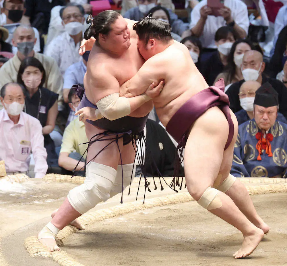<名古屋場所9日目>遠藤(左)を押し出しで下す照ノ富士(撮影・亀井 直樹) Photo by スポニチ 照ノ富士 土俵際で粘って4連勝! 7人が首位に並ぶ大混戦は一山本のみが不… ギャラリーで見る この記事のフォト 2022年07月18日の画像一覧 もっと見る 2022年07月18日の画像をもっと見る