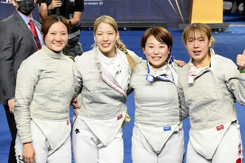 フェンシングの世界選手権最終日は23日、エジプトのカイロで団体2種目が行われ、女子サーブルで日本(江村美咲、福島史帆実、尾崎世梨、小林かなえ)は3位決定戦でスペインを45―43で下して銅メダルを獲得した。38―40で迎えた最終第9ピリオドにアンカーの江村が逆転した。