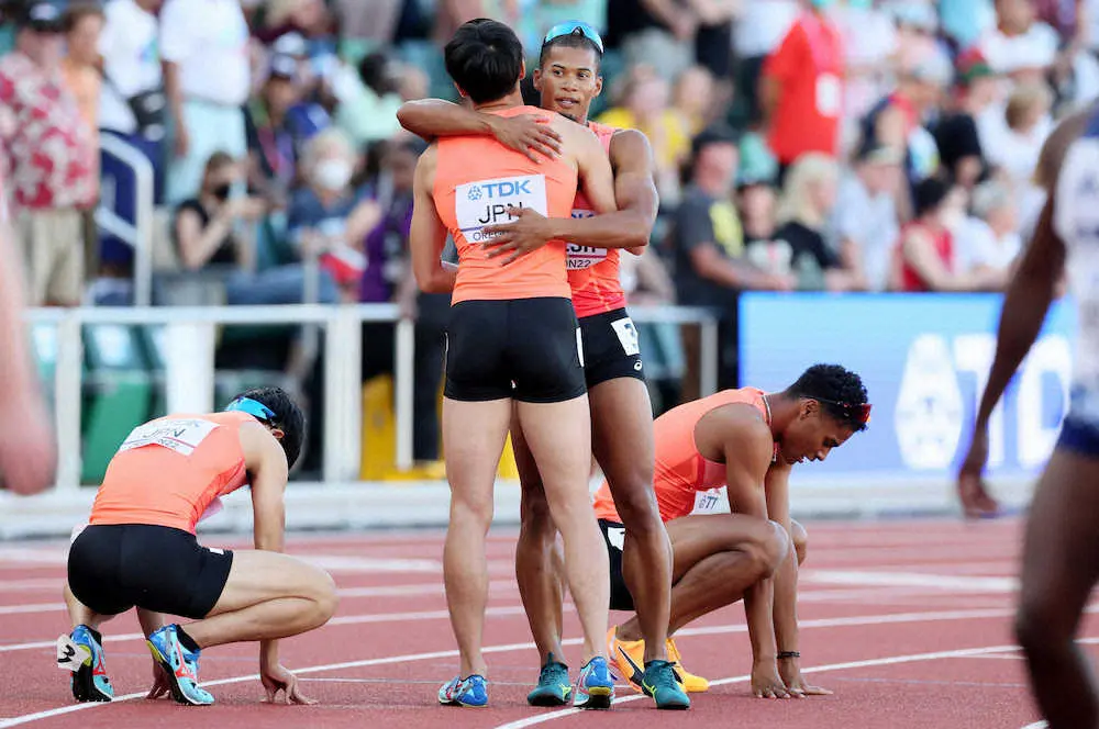 あと一歩が届かなかった。ジャマイカ人の父と日本人の母を持つ3走のウォルシュが6位から4位まで押し上げ、アンカーの中島へとバトンを渡す。3位ベルギーを目の前に捉えながら追走するも、差は縮まらずに4位でフィニッシュ。3分を切るアジア記録にも「めちゃめちゃ悔しい」と中島が言えば、激走したウォルシュも「狙っていたのはメダル。(記録の)喜びより悔しさの方が大きい」と唇をかんだ。