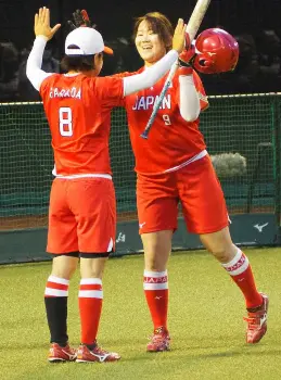 試合前のホームラン競争で計5発を放ち、米国と引き分けに持ち込んだ中川彩音(右)は原田のどかに出迎えられる Photo by スポニチ ホームラン競争は引き分け 日米対抗ソフトボール試合前から両雄が“熱戦” 2022年08月06日の画像一覧 もっと見る 2022年08月06日の画像をもっと見る