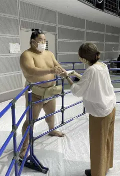 所沢市出身の北勝富士は若隆景(27=荒汐部屋)とともに出演した質問コーナーで地元の子供たちと会話。「どうしてお相撲さんになったんですか?」の問いには「子供の頃わんぱく相撲で負けて悔しかったので、本気で相撲をやろうと思いました」と優しい口調で回答した。また、稽古の時間には会場の空いたスペースで運動。埼玉栄高校の同級生だった翔猿(30=追手風部屋)と四つに組み合うように肌を合わせる“山稽古”も披露した。