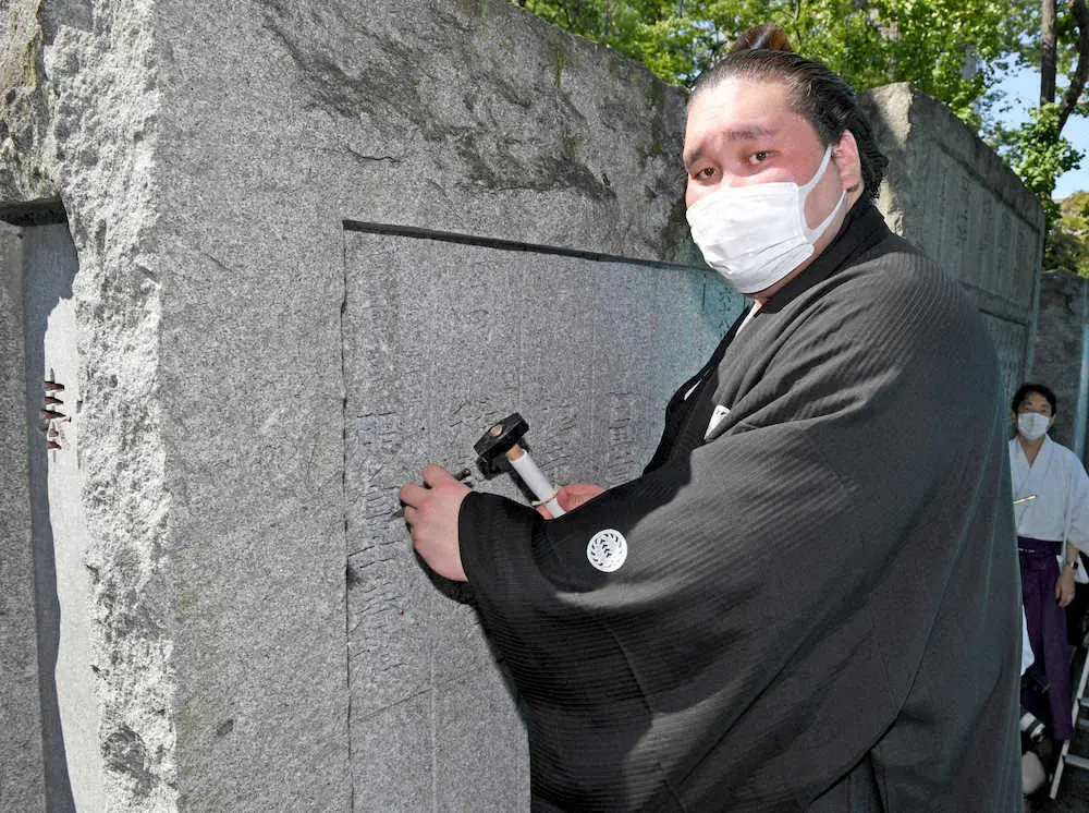 照ノ富士「歴代の横綱たちと肩を並べることができた」富岡八幡宮で横綱力士碑刻名奉告祭