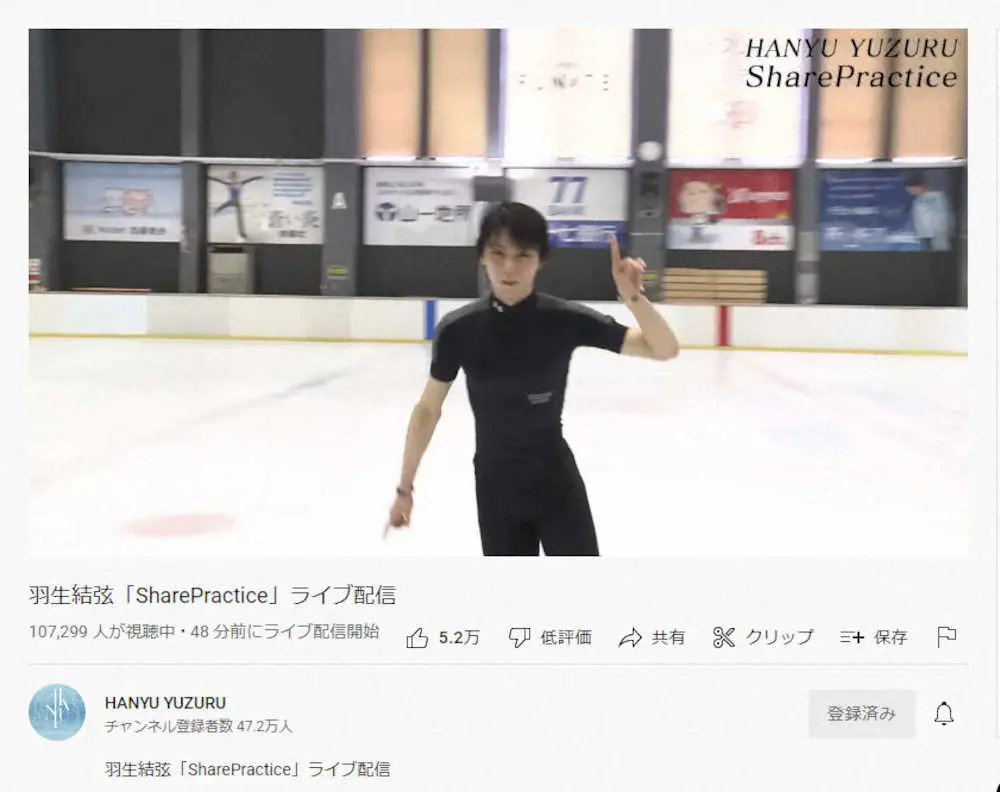 一時は10万7000人を超えたファンが視聴した羽生さんの「SharePractice」(本人公式YouTubeチャンネルから)
