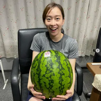 石川佳純 “デカデカ”スイカ抱えるスマイルショット公開に「良い表情」「幸せそうな顔」「可愛すぎ」
