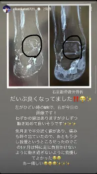 紀平は昨年末と現在のレントゲン写真を投稿し「だいぶよくなってました!!」と喜びの報告。「わずかの線はありますが少しずつ動き始めてよいそうです 先月まで半分近くの線があり、痛みも時々出ていたので、あともう少し我慢とうところだったので この1ケ月は特に足に負担かけないように動き過ぎないよう我慢してよかった」とつづり「あー嬉しい」とうれし涙の絵文字を並べた。