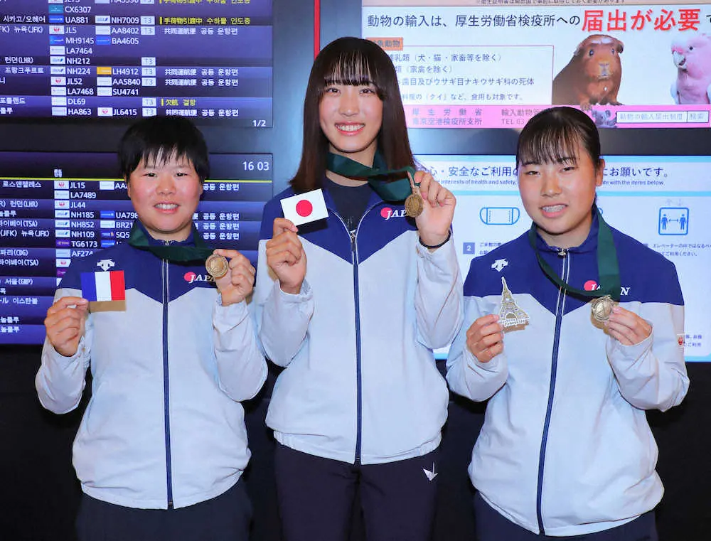 フランスから帰国し笑顔の馬場(撮影・光山 貴大) Photo by スポニチ 馬場咲希らが団体3位の世界アマから帰国「パッティングは伸びしろ」 ギャラリーで見る この記事のフォト 2022年08月29日の画像一覧 もっと見る 2022年08月29日の画像をもっと見る
