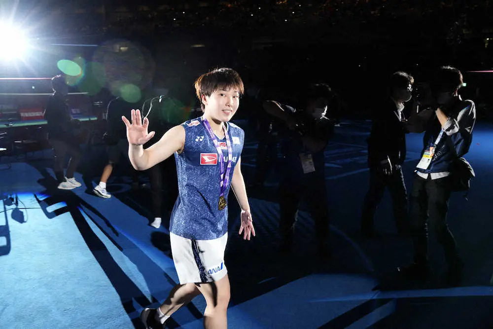 常に冷静な山口も、自国開催の優勝は格別だった。相手のミスショットで優勝が決まると会場を見渡し「グッとくるものがあった」。女子シングルス日本勢初の世界連覇を成し遂げ「こうやって喜んでもらえるのが自分にとってはうれしい」と振り返った。