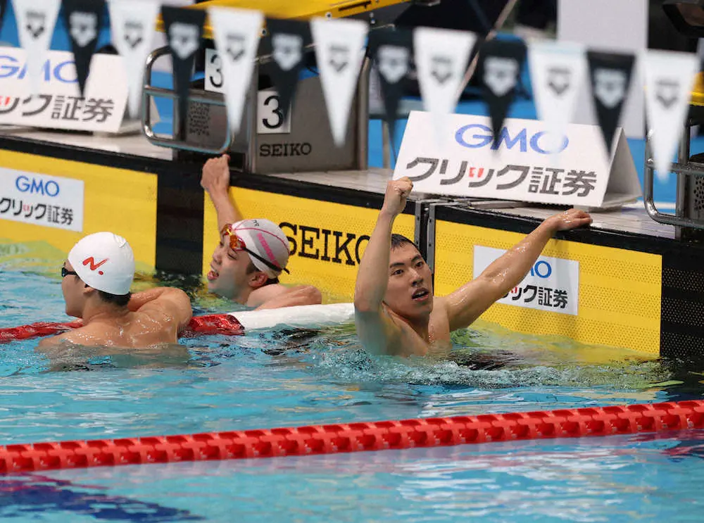 レースは序盤から本多と日大後輩の寺門弦輝(3年)、200メートル個人メドレーを制した小方颯(1年)の3人の争いに。100、200、300メートルのターンをいずれも1位で通過した本多が、ラスト50メートルで後続を突き放した。2位に小方、3位には寺門が入り、日大勢がワンツースリーフィニッシュを決めた。