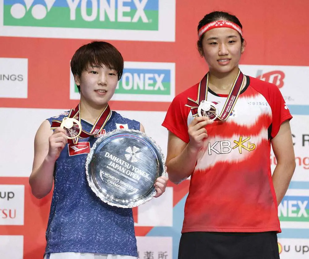 世界女王の山口は、わずか38分の貫禄勝ちだった。韓国の若手を寄せつけず、19年大会に続く2大会連続3度目のV。「良かったなって思います。最後まで楽しむことを貫き通せた」と振り返った。