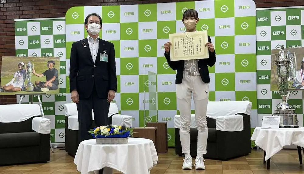 今夏、日本勢として37年ぶりに全米マチュア選手権を制した馬場咲希(17)が7日、出身地の「日野市民スポーツ栄誉賞」を受賞し、東京・日野市役所内で開催された表彰式に参加した。
