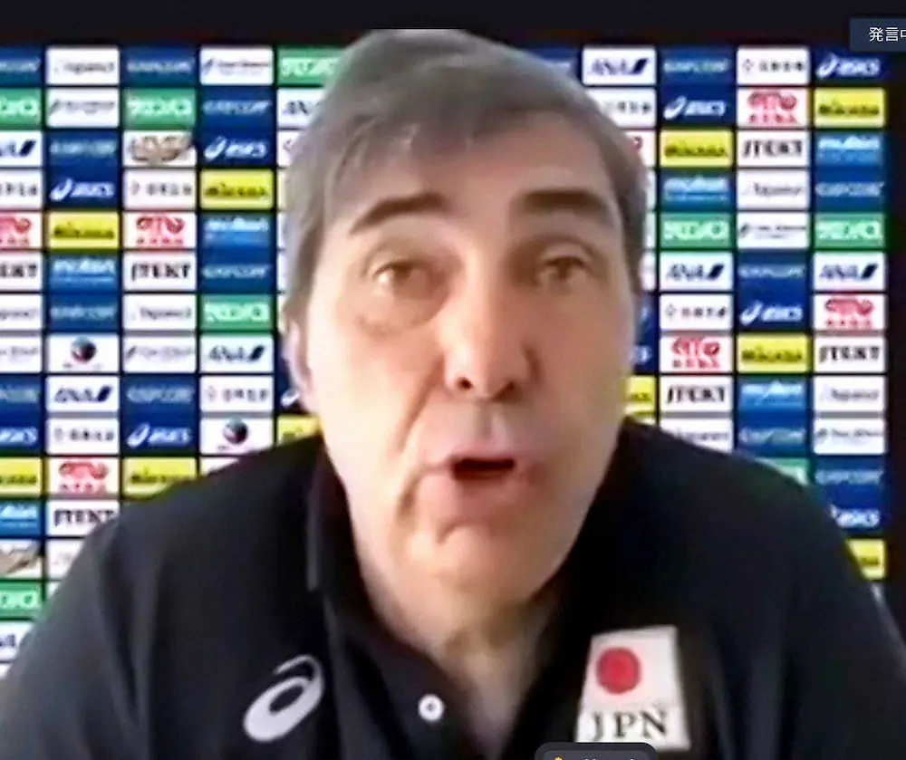 オンラインで記者会見するバレーボール男子日本代表のフィリップ・ブラン監督