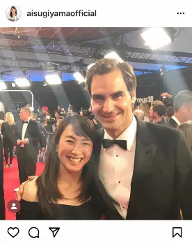 「Thank you Roger」とフェデラーとの2ショットを掲載。「ロジャーは凄過ぎて 刺激を受けたというより 常に憧れでした」と杉山さん。「会場ですれ違う時は気さくに『Hey Ai』と挨拶をしてくれたり 本当に優しさ溢れるジェントルマン」とその人柄に触れた。