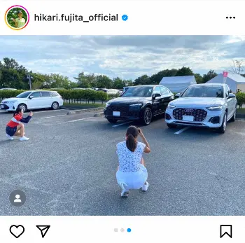 また、愛車を撮影する様子とともに、「3枚目#車好き女子#audi好き女子 並ぶとまたカッコイイなー次は連なって走りたい#Audiさいたま新都心#Audi#Q5 写真のために3回停め直したのは…#先輩黒派#私白派」と投稿した。