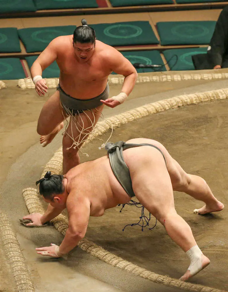 勝った勇磨は「素直にうれしいです」と喜びを表した。土俵際の突き落としは「狙ってないです。たまたまハマりました」と無我夢中の勝利だった。元大関を破る“殊勲の星”に「自信がつく一番になりました」と大きな収穫を得た。