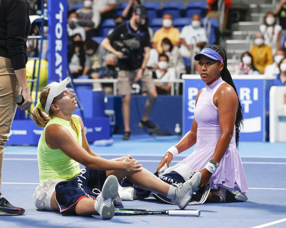 予期せぬ結末だった。試合開始からわずか7分、第1セット1―0で迎えた第2ゲーム30―30の場面。サビルがフォアの逆クロスを打った直後に悲鳴とともに倒れ込んだ。「オーマイニー!(膝がぁぁぁ!)」。大坂は異変に気付くと、即座にタオルを手に駆け寄った。そのまま相手は途中棄権。ツアー4大会ぶりの白星を手にしたが「とても怖いシーン。私も悲しい。私も今年の大半はケガしていたので彼女の気持ちは分かる。ひどいケガじゃないことを祈っている。正直、勝った気はしない。妙な気持ち」と神妙。今季はアキレス腱や腰の故障に苦しんだだけに、人ごとではなかった。