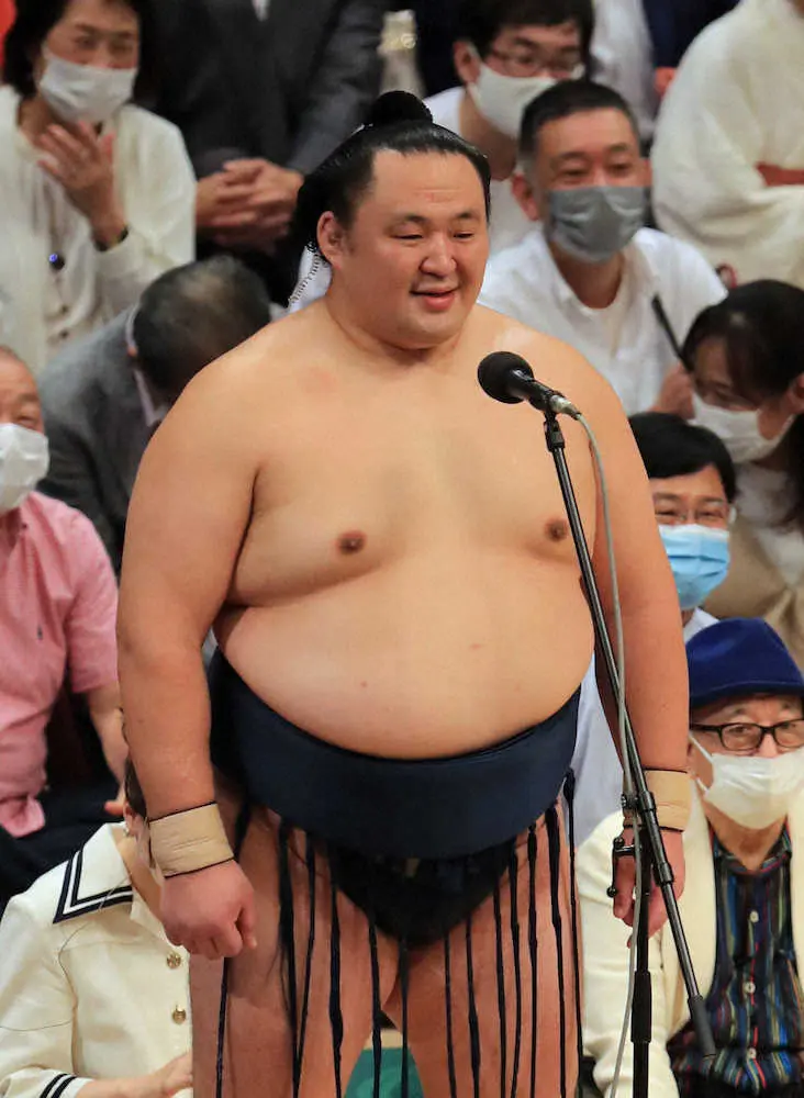 「毎日毎日緊張感があって…それでも皆さんが熱い応援をしてくれて、それに応えるためにしっかりやりました」と今場所を振り返り、優勝を意識したのは「3日前ですね」と率直に告白。エルデネビレグ夫人と長男・テルムンくん、19年初場所で初優勝した日に誕生した次男・エレムンくんに「早く会いたいですね」と笑顔を見せ、来場所へ向けて「11月場所もすぐなので、気持ち熱いまま生かしたいと思います」と意気込んだ。