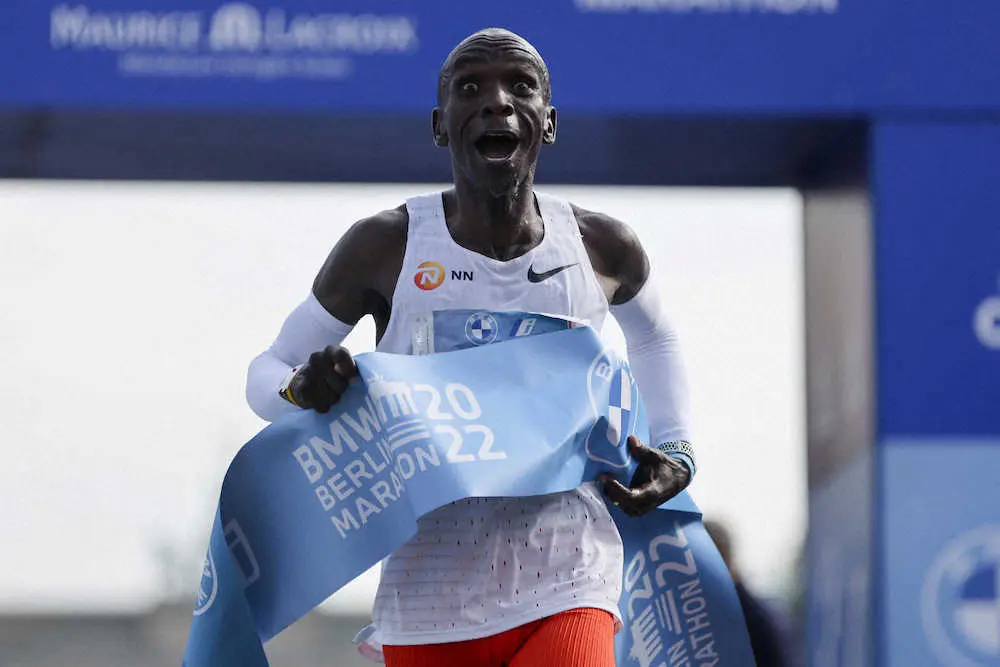 ベルリン・マラソンが25日、ドイツ・ベルリンで行われ、男子は16年リオデジャネイロと21年東京と五輪連覇のエリウド・キプチョゲ(37=ケニア)が自身が保持していた世界記録(2時間1分39秒)を更新する2時間1分9秒で、4年ぶり4度目の優勝を果たした。
