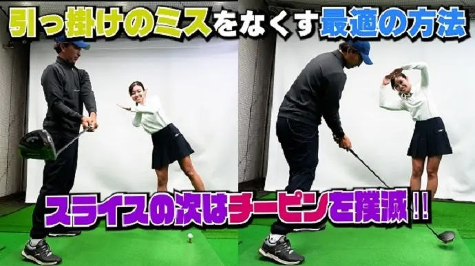 最終回のテーマは、アマチュアに意外と多い引っ掛けのミスを防ぐ方法です。奥嶋誠昭コーチによれば、引っ掛けは体の回転が止まることで起きると言います。疲れたときに、その現象がよく見られるとのこと。ではなぜ、体の回転が止まってしまうか。ポイントは上半身の前傾角度にあるそうです。ぜひそれを防いで、スコアアップにつなげましょう。アシスタント役を日大OGで〝白金台女子ゴルフ部〟の加藤みなみさんが務めます。