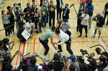 昨季NBAファイナルで自身4回目の優勝を果たし、初のファイナルMVPも受賞。練習前には、関係者を通じて練習場を訪れた宮城野親方(元横綱・白鵬)に歩み寄り、即席の“稽古”も実施した。