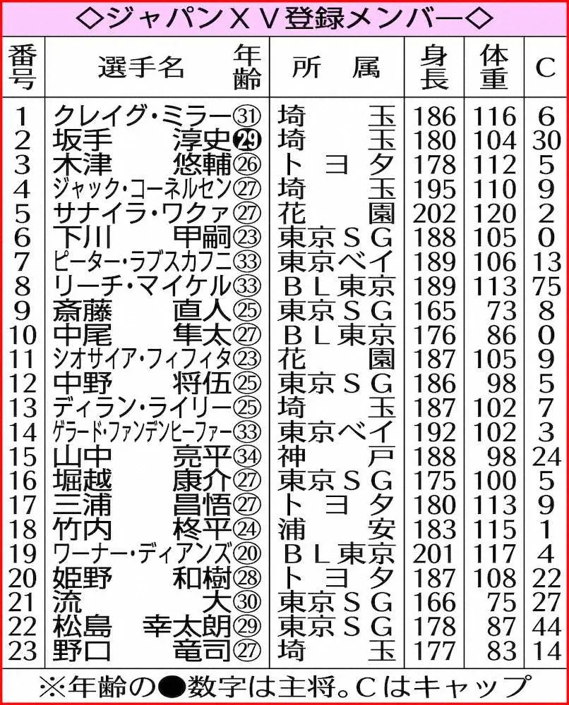 ◇ジャパンXV登録メンバー◇