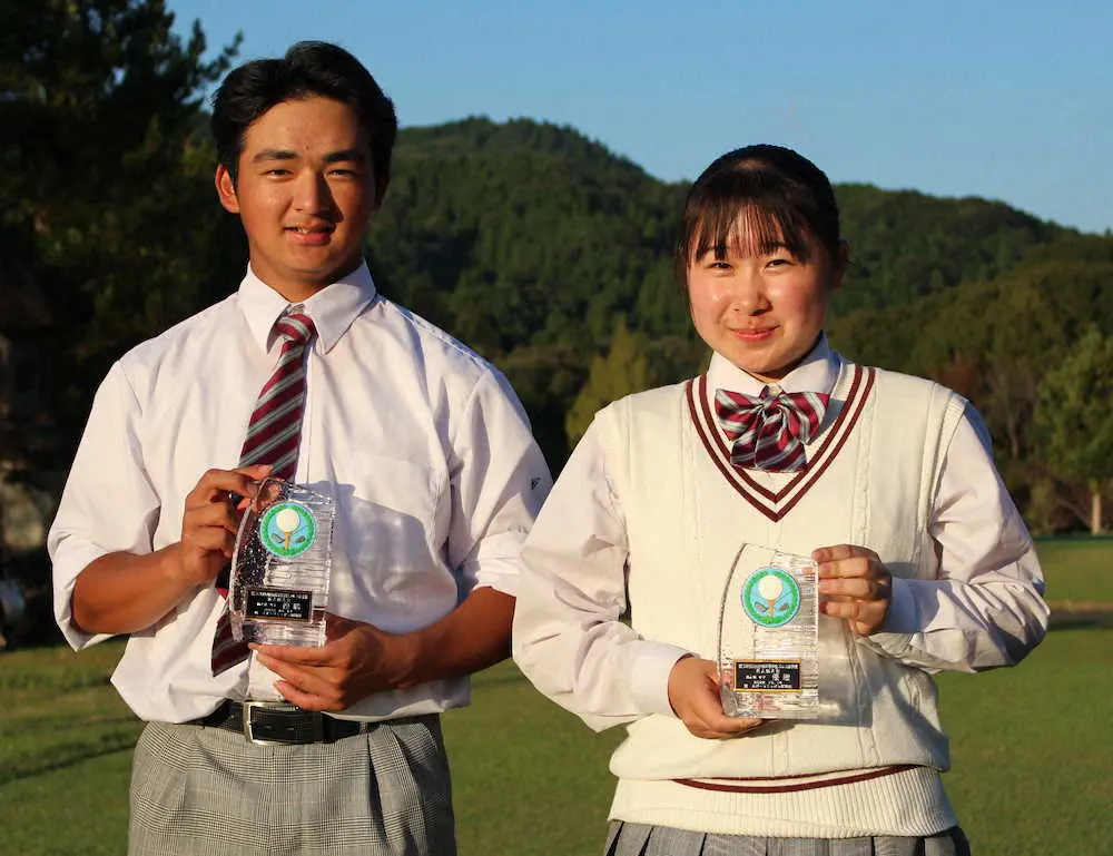 女子個人戦は8月の日本ジュニア女子15~17歳の部に優勝した荒木優奈(宮崎・日章学園2年)が7バーディー、1ボギーの6アンダー、66で昨年からの連覇を果たした。同男子は7月の九州ジュニア覇者の丸尾怜央(宮崎・日章学園1年)が初優勝。3アンダー、69で首位に並んだ5人によるプレーオフを1ホール目のバーディーで制した。