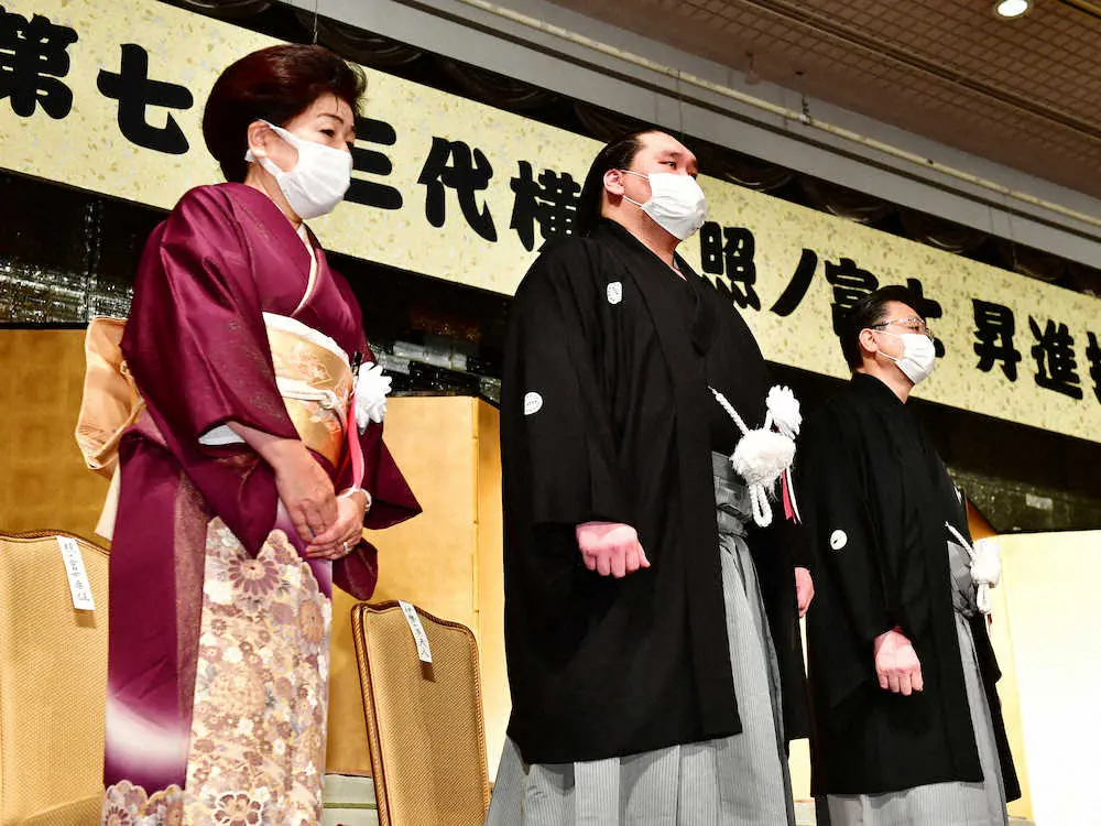 照ノ富士は「いろんなことがありましたが、一つだけ目標を持ってやり続け、それがかなえられた。ここで終わりではなく、もっと高みを目指して、これからも勉強して頑張っていきます」と、あいさつした。秋場所は両膝のケガなどで途中休場し、師匠の伊勢ケ浜親方(元横綱・旭富士)は手術の可能性も示唆しているが、横綱は「今は言えない」とだけ話した。
