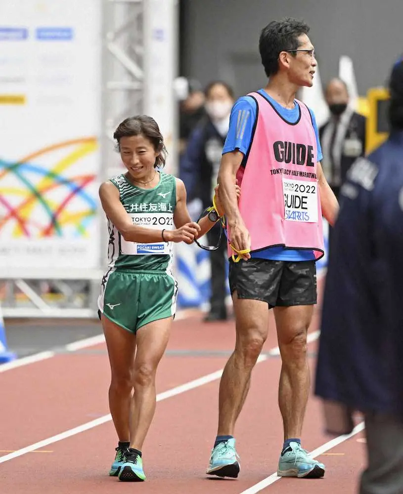 東京レガシーハーフマラソンは16日に第1回大会が国立競技場で行われ、東京パラリンピック女子マラソン(視覚障がいT12)金メダルの道下美里(45=三井住友海上)が世界新記録相当の1時間23分34秒を出したが、伴走者が先にゴールする規定違反で無念の失格となった。男子は村山謙太(29=旭化成)が1時間2分14秒で日本勢トップ9位、女子は山口遥(35=AC・KITA)が1時間10分35秒で同トップの3位だった。